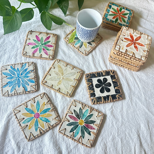 Set of 4 random color Handcrafted Resin & Rattan Coaster Set - Decorative Drink Mats for Tea Cups