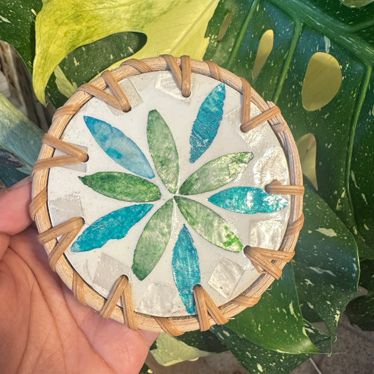 Set of 4 Random color Handcrafted Resin & Rattan Coaster Set - Decorative Drink Mats for Tea Cups